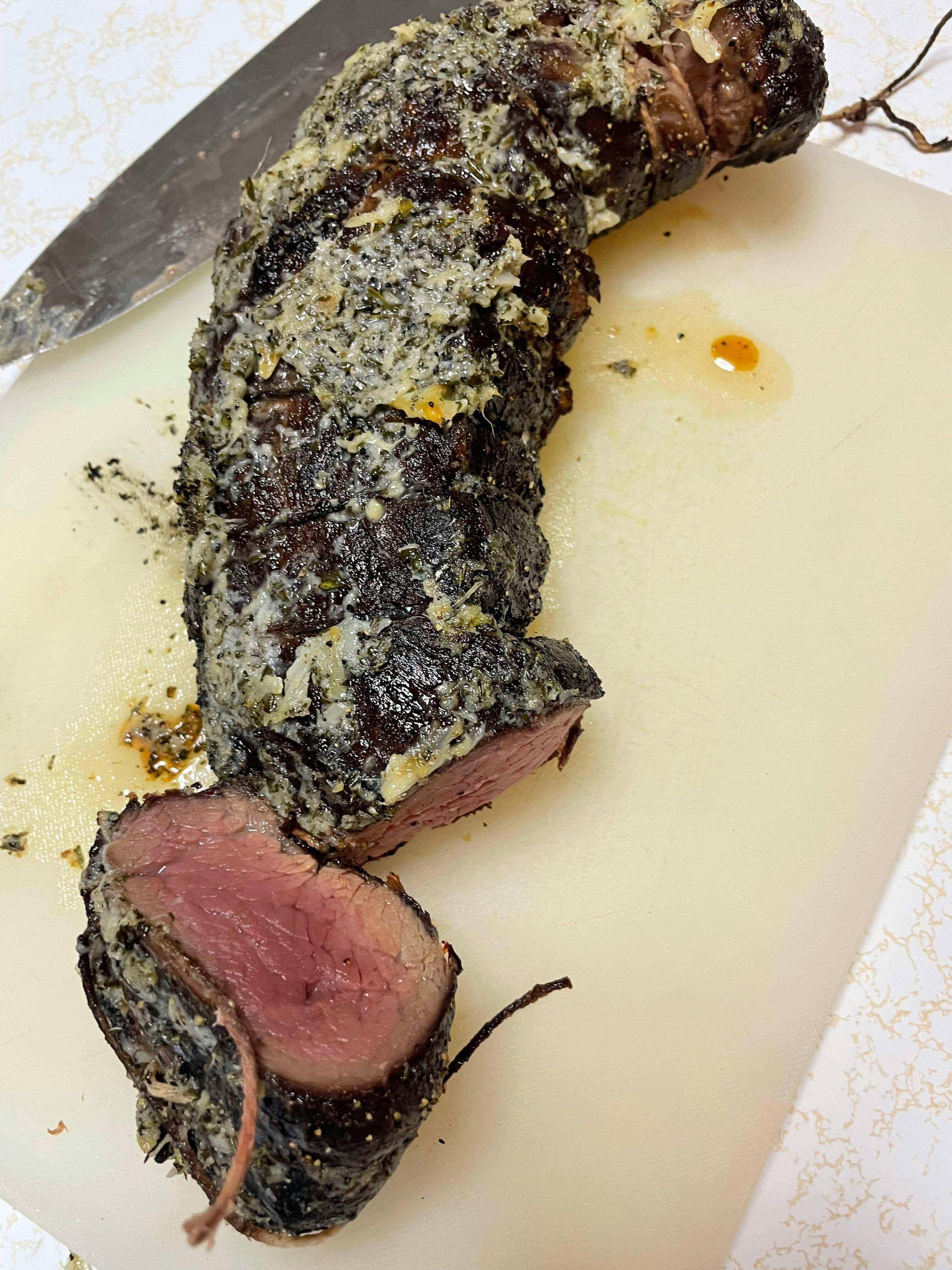 It's large enough to feed eight to ten people, but if you opt to cut the center tenderloin first, feeding four to six people, you can utilize the ends in other dishes.